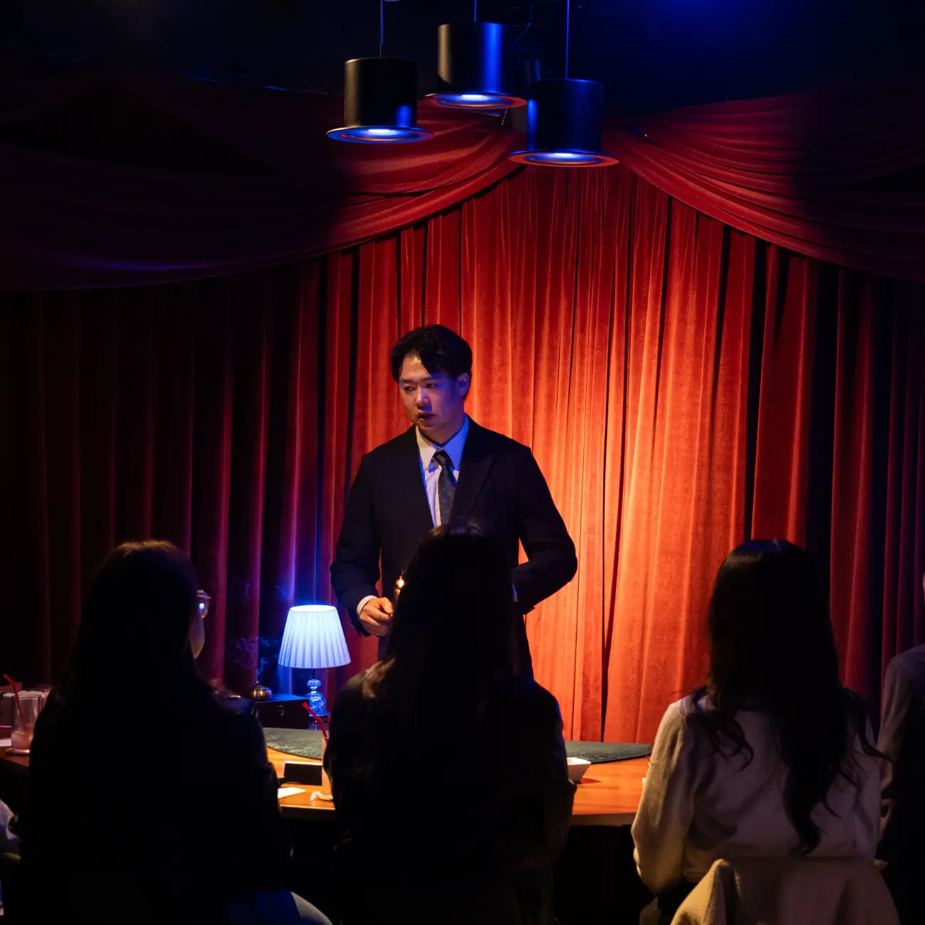 마술사의 퍼포먼스를 코앞에서 볼 수 있어요.