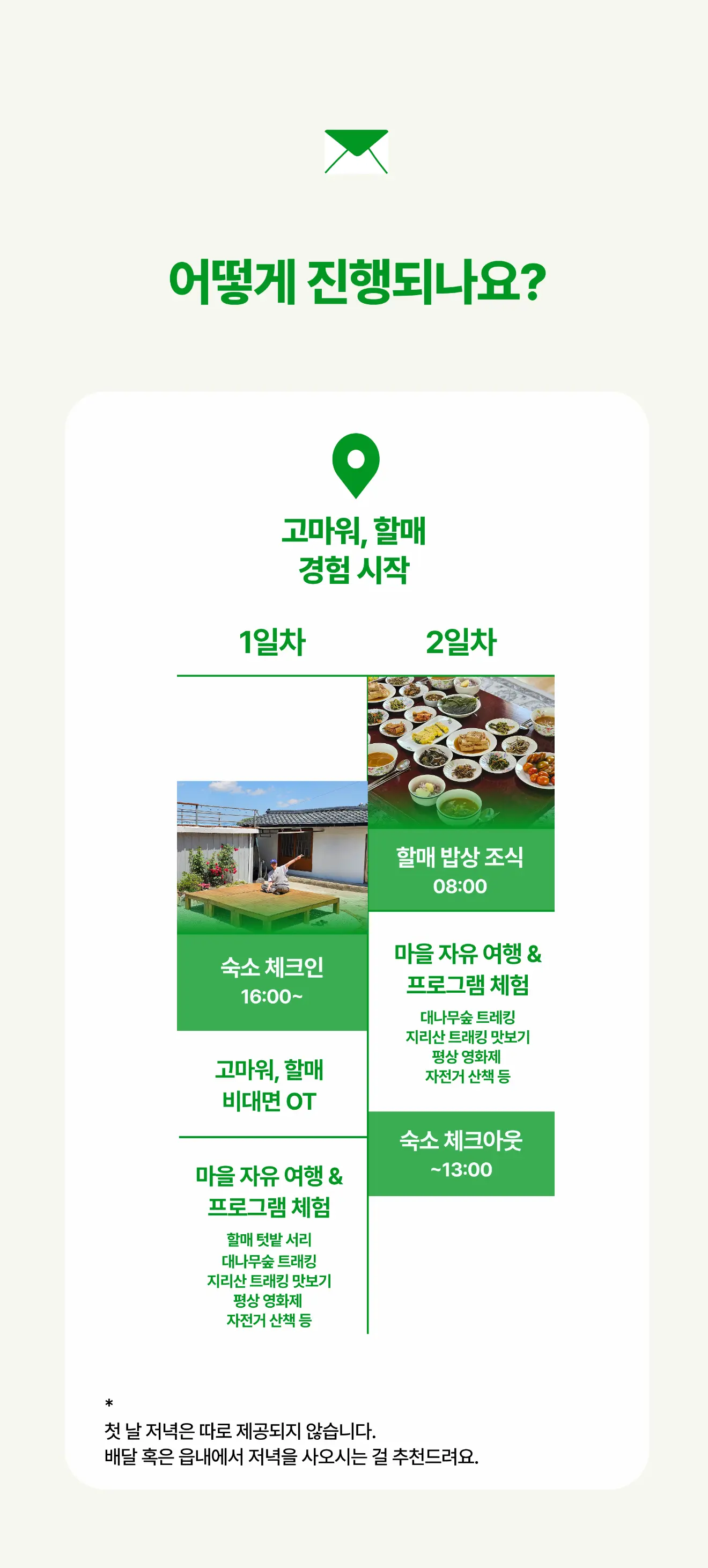 지리산 트래킹, 평상 영화 등 놀거리 (옵션선택)