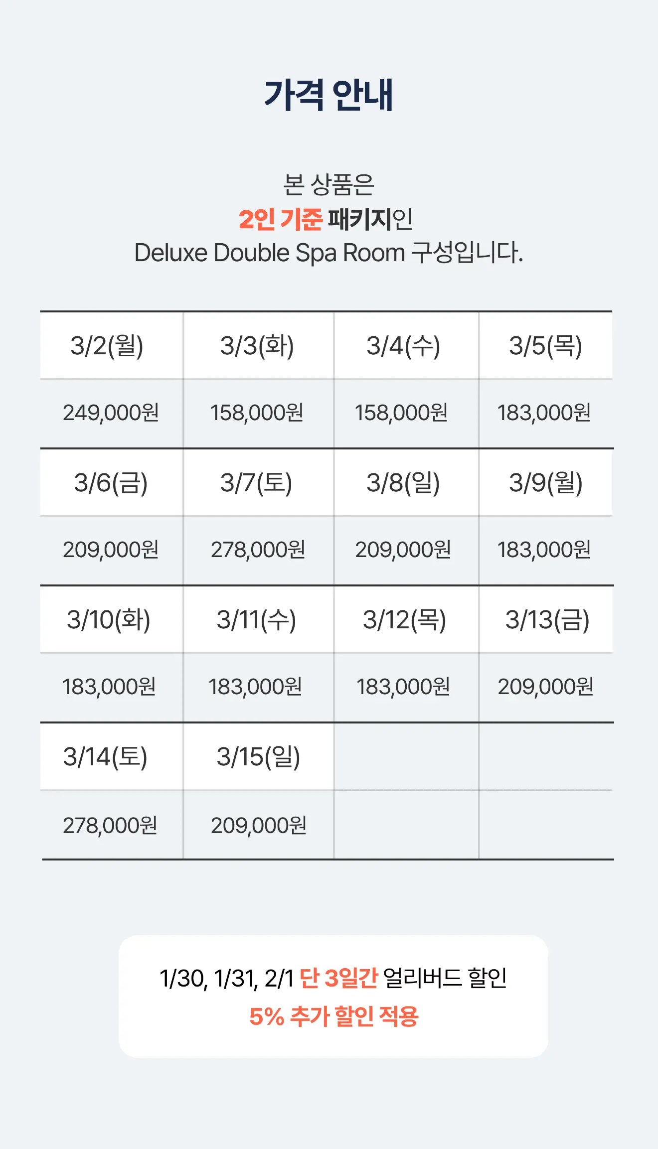 디럭스 더블 스파룸 숙박권(2인)