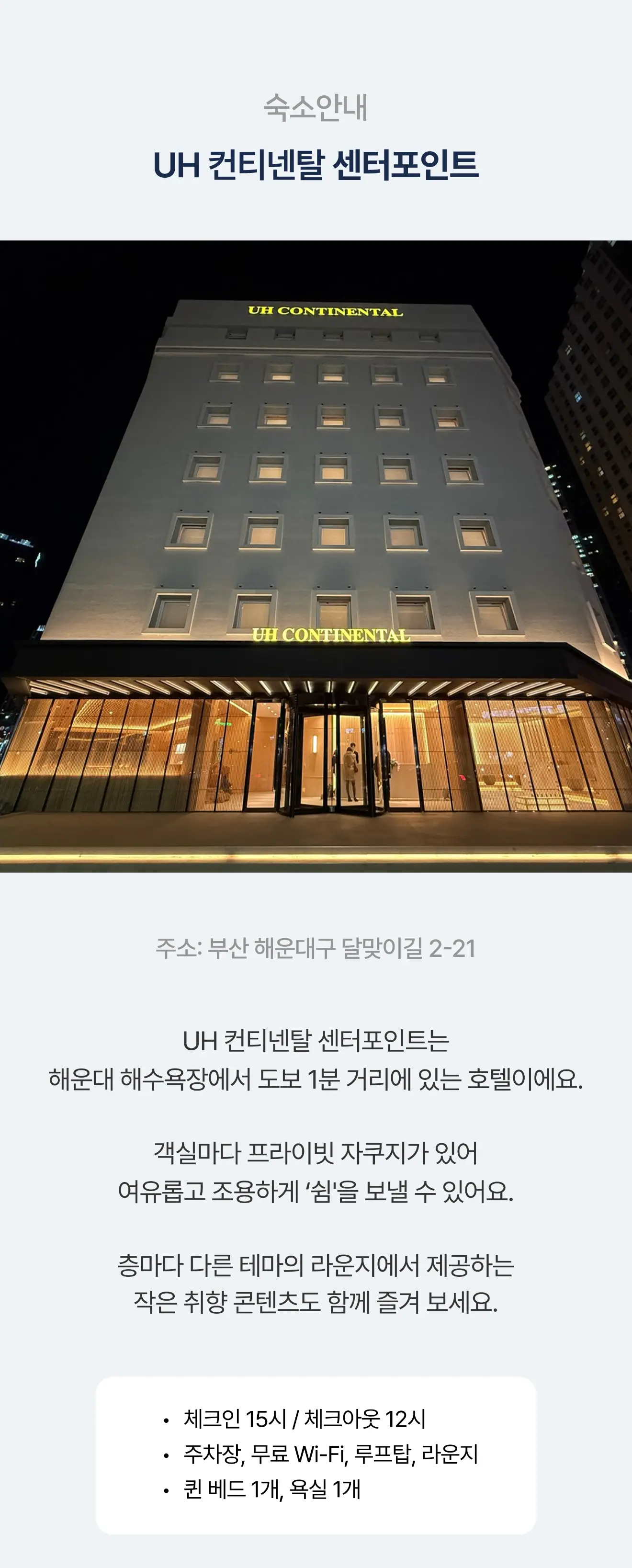 주소 | UHC 컨티넨탈 센터포인트 (부산 해운대구 달맞이길 2-21) |