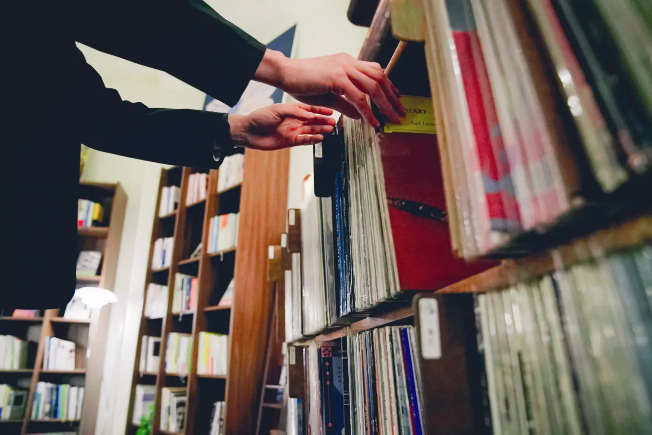 LP를 고르고, 책을 펼치고
