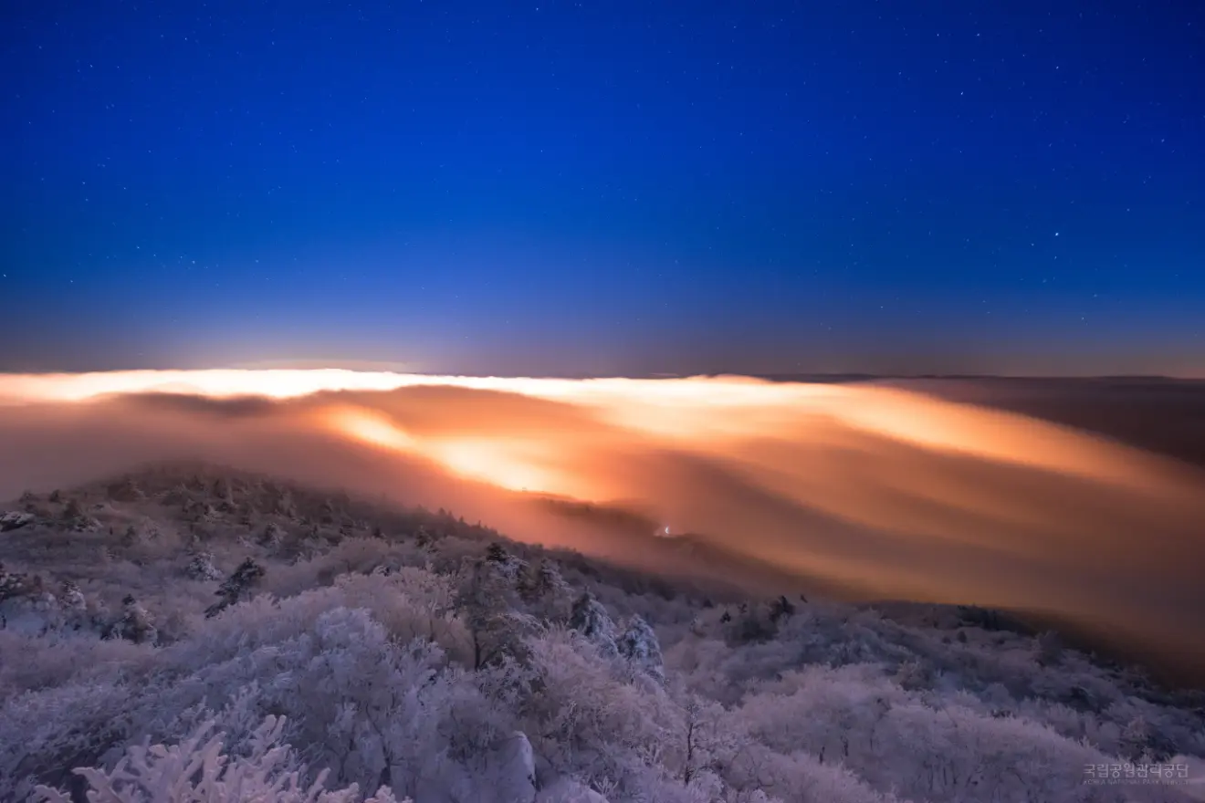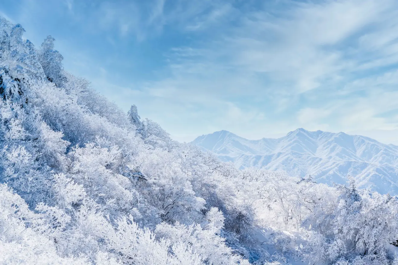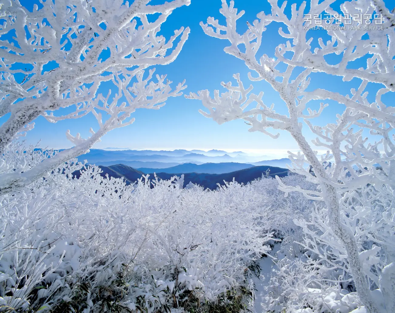 덕유산에서 설산의 아름다움에 빠져보세요.