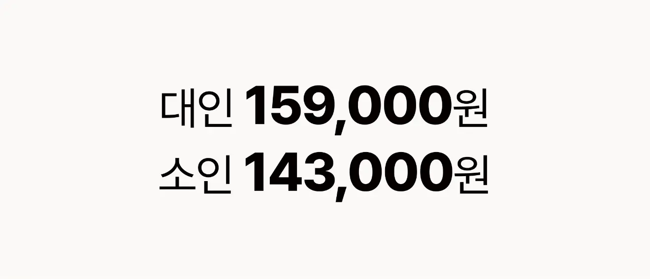 소인(12세 이하) 동반일 경우 채널톡으로 문의주세요.