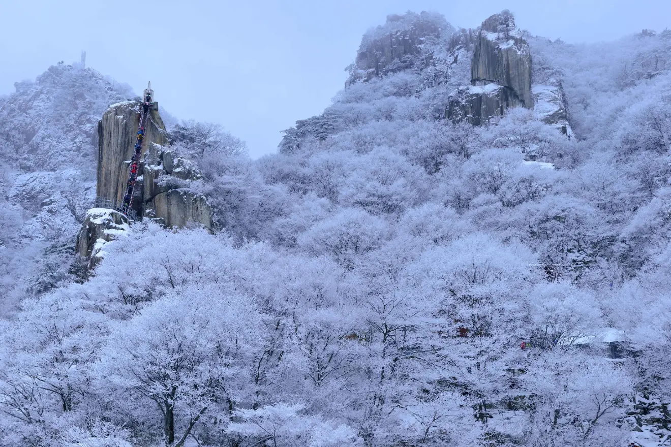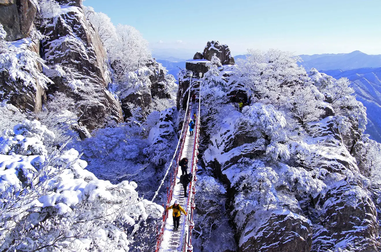케이블카로 편하게 올라가서, 눈이 내려앉은 능선과 기암절벽이 펼쳐진 압도적인 겨울 풍경을 만나요.