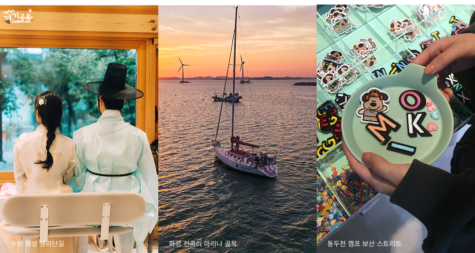 👸🏻 공주들의 야행극장 조선시대 공주가 되어볼까? '궁 밖 친구들과의 밀회' 컨셉으로 한복을 입은 채 카페 투어부터 청사초롱 만들기까지 다양한 체험을 할 수 있어. '수원 화성 행리단길'의 밤을 걷다 보면, 시간 여행 온 듯한 기분이 들지도! 🛥️ 요트 투어 ‘화성 전곡항’에선 다양한 요트 투어가 가능해. 낚시를 하거나, 석양빛 바다를 바라보며 ... |