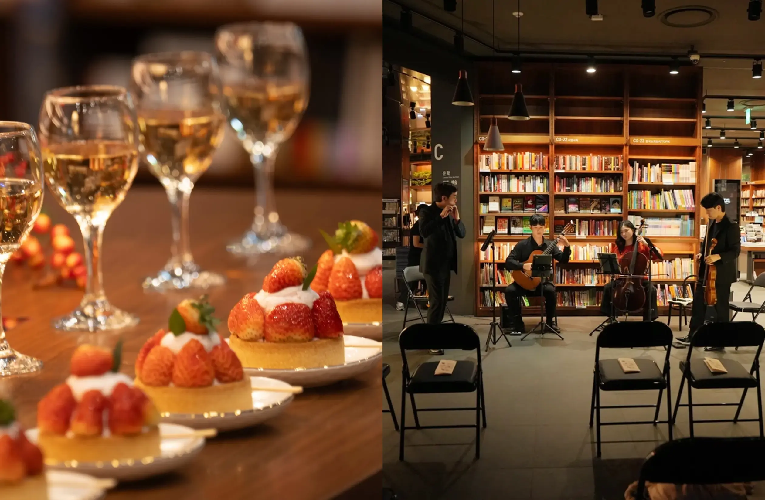 사람이 모두 빠져나간 밤, 부산의 문 닫힌 서점 안에서 프라이빗하게 진행되는 클래식 음악회야. 심야 연주회를 감상하며 수제 딸기 디저트, 향긋한 동백꽃차를 마시는 시간이라니! 낭만 그 자체이지 않아? 매진이 빠르니 서둘러 예약하기를 권장할게.