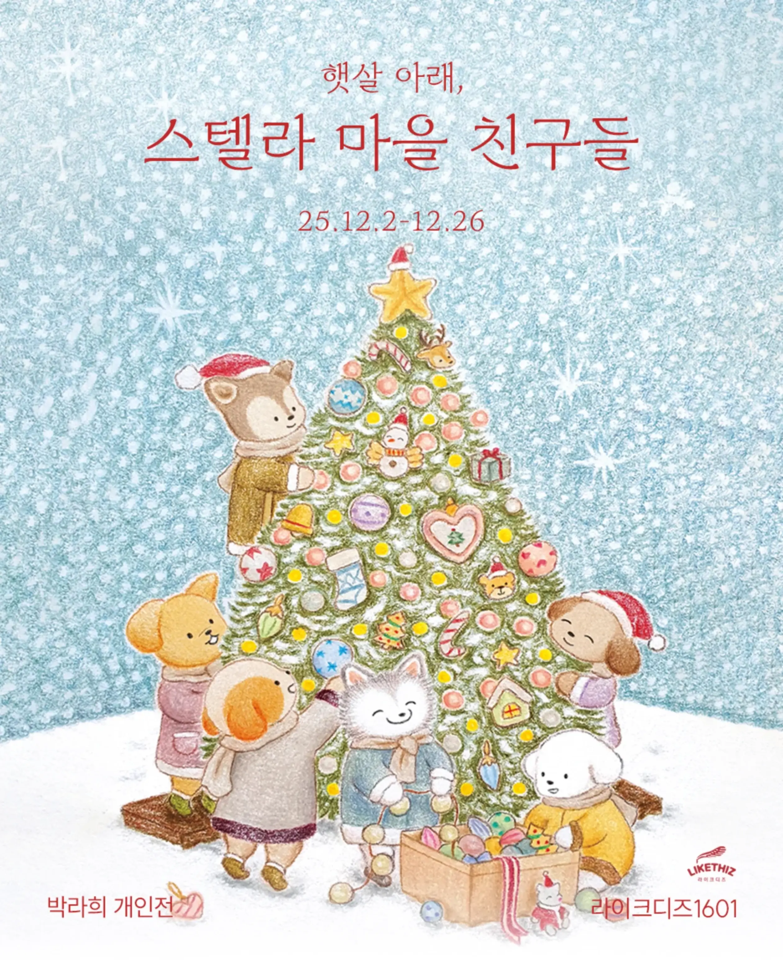 숲속 마을에 사는 동물 친구들의 이야기를 담은 그림이 전시되어 있어. 눈사람을 만들고, 쿠키를 굽는 작은 동물 친구들을 보다 보면, 동화책을 펼쳐보는 듯 따뜻한 기분이 들지. 아담한 규모의 전시인 만큼 가벼운 마음으로 관람하기 좋고, 관람권에는 아트 굿즈가 포함되어 있어 작은 기념품도 챙겨갈 수 있어.