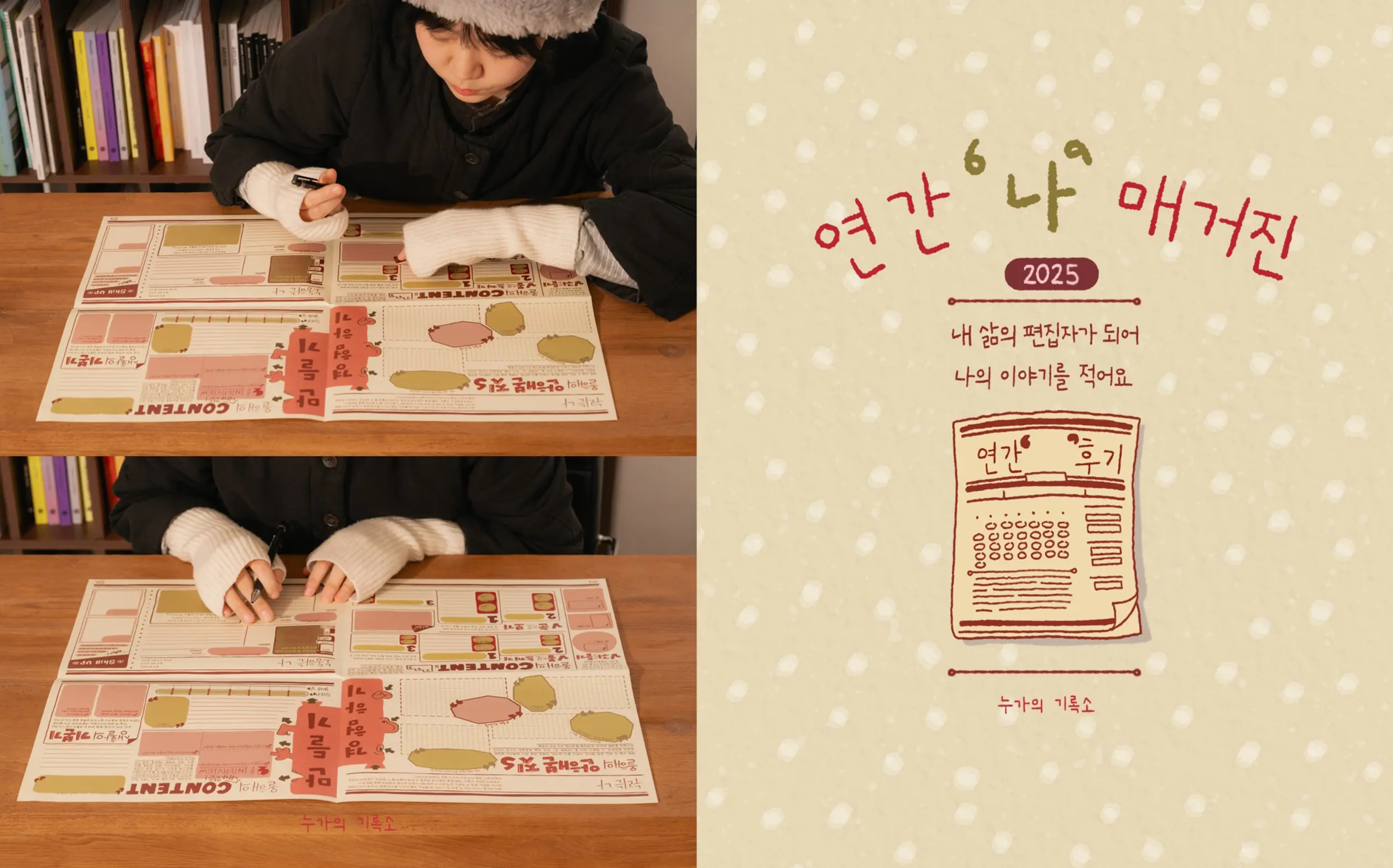 새해 계획 세우기 전에 회고부터 하고 싶다면 ‘연간 나 매거진’을 펼쳐볼까? 2025년 큼직한 키워드부터 올해의 맛·소비·장소·사람처럼 일상을 이루는 순간까지 기록하는 툴킷이야. 반짝였던 장면들을 편집하듯 모아 적다 보면, 나의 1년이 한 편의 매거진으로 완성될 거야. 다 쓰고 나면 “이만하면 잘 살았다”는 마음이 남을 지도!