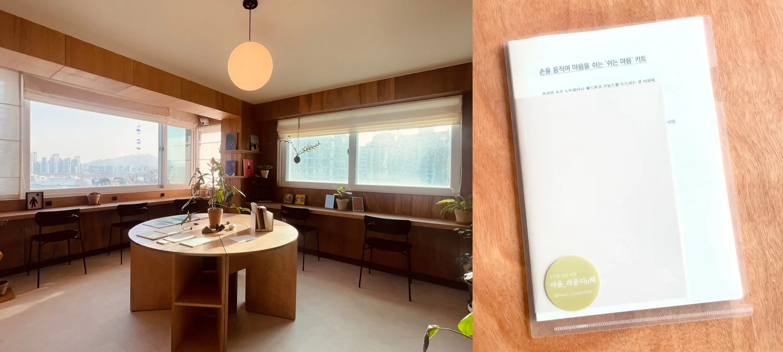 한강뷰가 펼쳐지는 이곳은 느긋하게 쉬다 갈 수 있는 공간이야. 가정집을 개조해 만들어, 특유의 아늑함도 느낄 수 있지. 입장 시 제공되는 ‘쉬는 마음 키트’에는, 손을 움직여 마음을 쉬게 도와주는 도구들이 들어있어. 주중에 소란스러웠던 마음을...