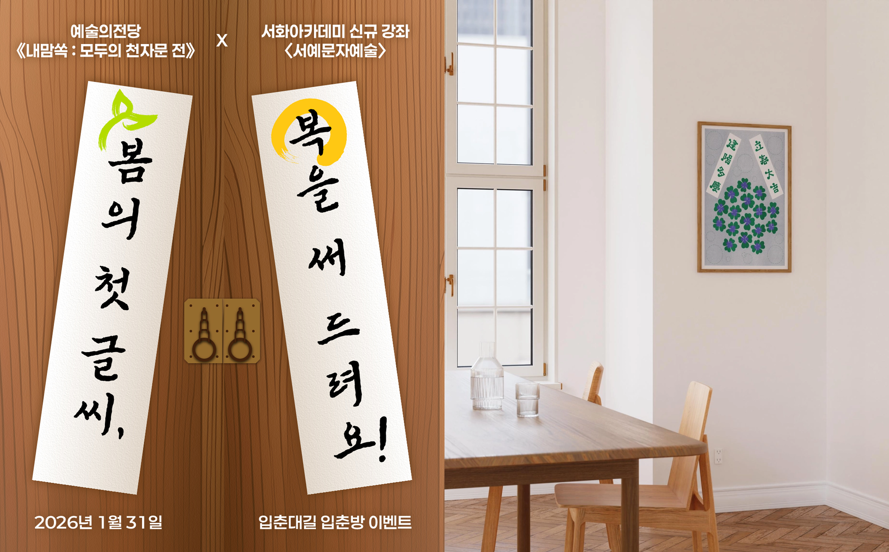 ⓒ예술의 전당 서예가가 직접 자필로 쓴 입춘방을 받을 수 있는 행사가 1월 31일 예술의전당 서예박물관에서 진행돼. 사전 예... |