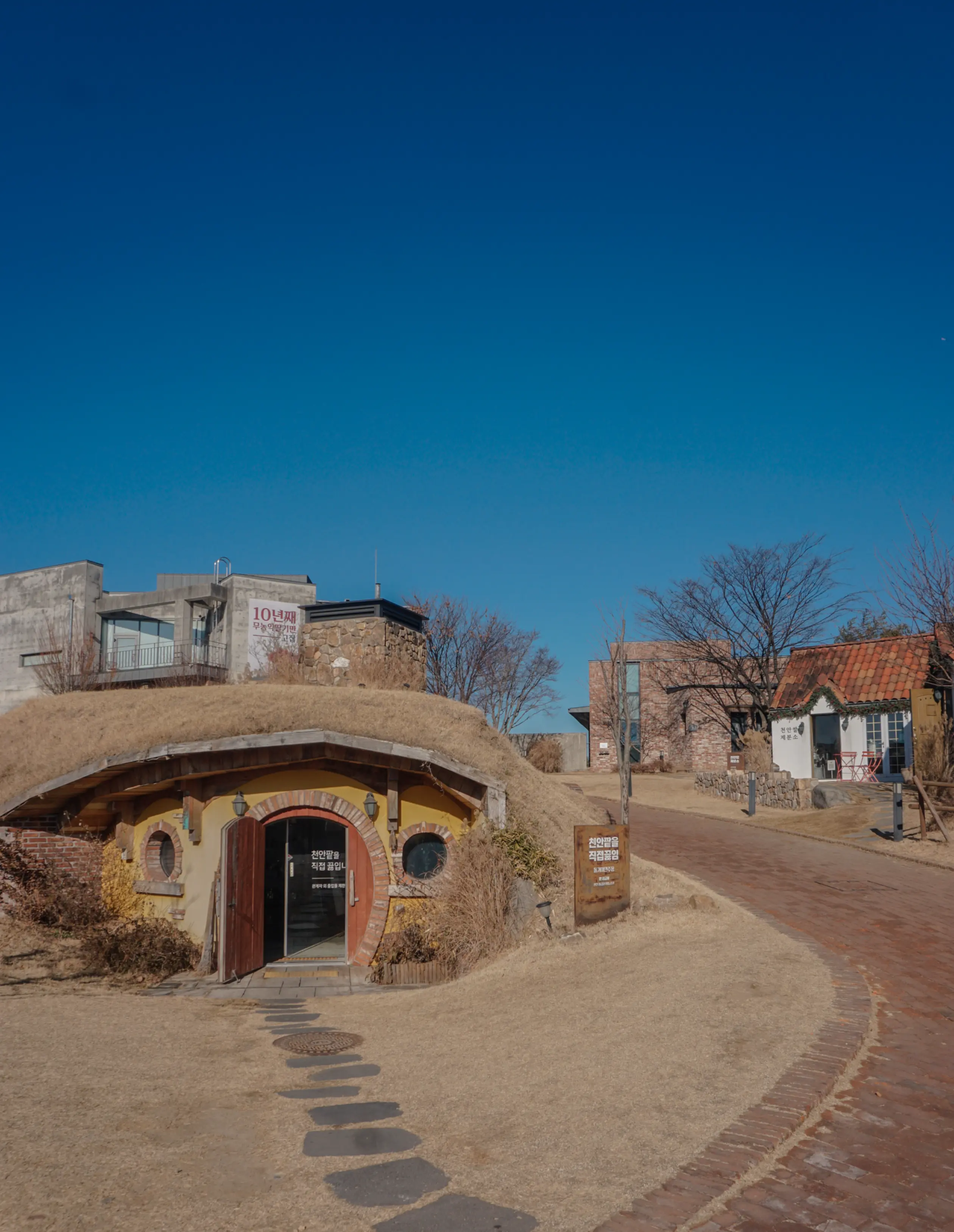 뚜쥬르 빵돌가마마을은 천안역에서 버스를 타고갈 수 있어 뚜벅이 여행자에게 부담 없는 빵지순례 코스야.