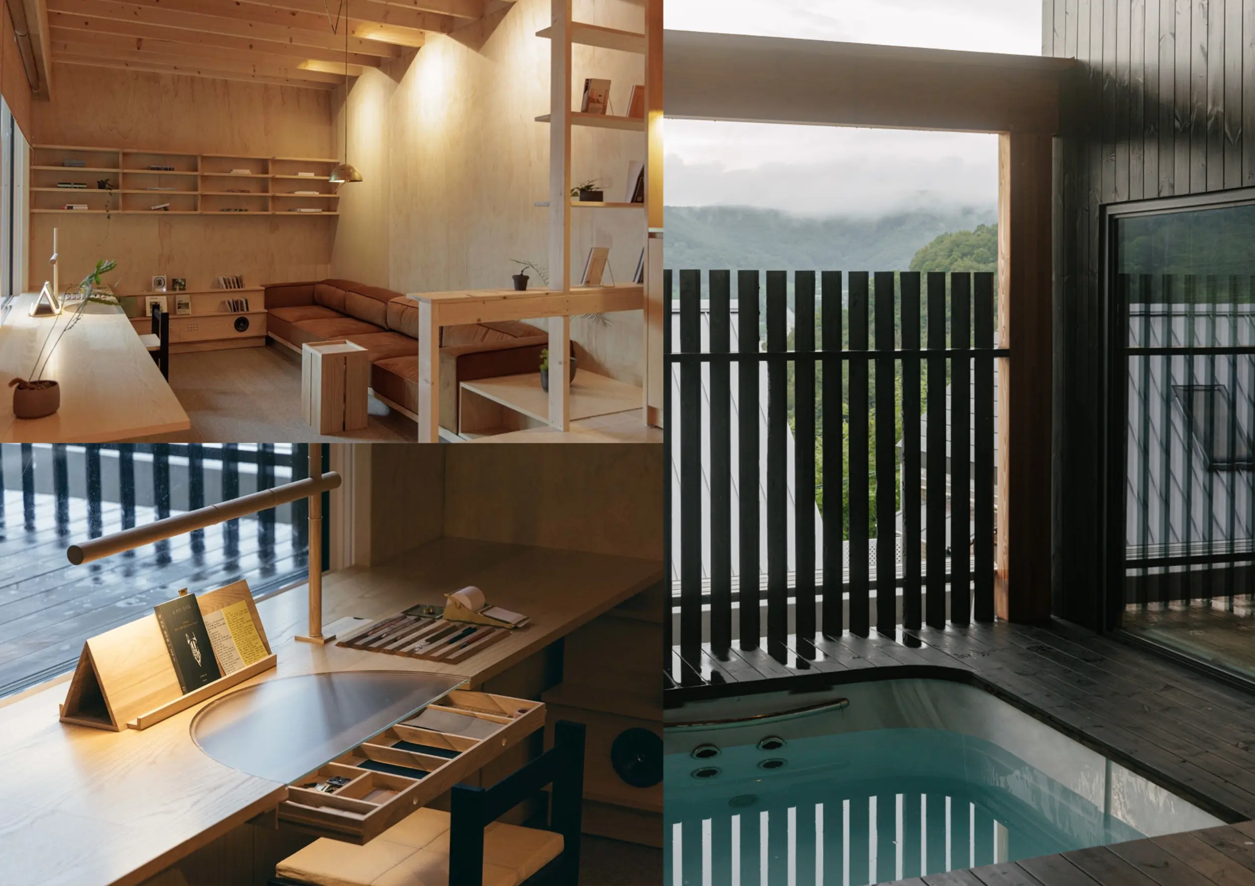 공간 곳곳에는 머무는 시간을 더 깊게 만들어주는 장치들도 마련되어 있어. 다양한 필기 도구가 준비된 데스크에서 방명록을 남길 수 있을 뿐 아니라, 책을 읽거나 나만의 기록을 차분히 남기기에도 좋아. LP와 CD가 구비된 청음 공간에서는 자연을 닮은 음악을 들으며 사색의 시간을 보낼 수 있고, 하루의 피로를 풀어주는 자쿠지 공간도 준비되어 있어 쉼의 밀도를 한층 높여줘. 자연 속에서 고요한 쉼을 누리고 싶은 랭랭이라면 분명 좋아할 거야 🌿
