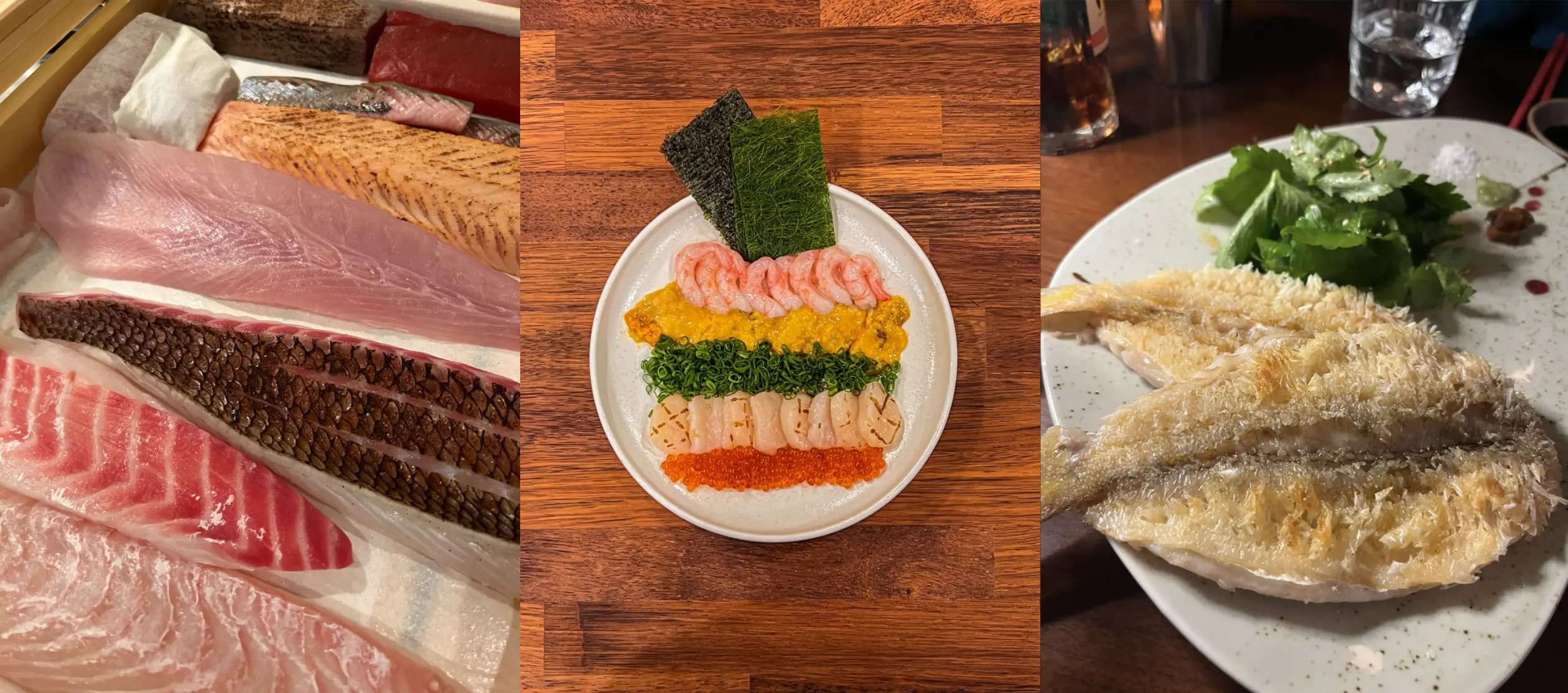 여의도의 수많은 이자카야 중 가장 마음에 들었던 곳이야. 회 신선도가 확실히 다르고, 한 점 한 점 퀄리티가 높아. 에디터의 추천 메뉴는 단우관이(단새우, 우니, 관자, 이꾸라)는 인데, 그걸 안키모마끼(아귀간 말이) 위에 올려서 같이 먹으면 정말 맛있어. 구이류도 진짜 강자인데, 특히 옥돔 구이가 겉바속촉의 정석이야. 분위기도 깔끔하고 정돈돼 있어서 모임을 하기에도 딱 좋아.