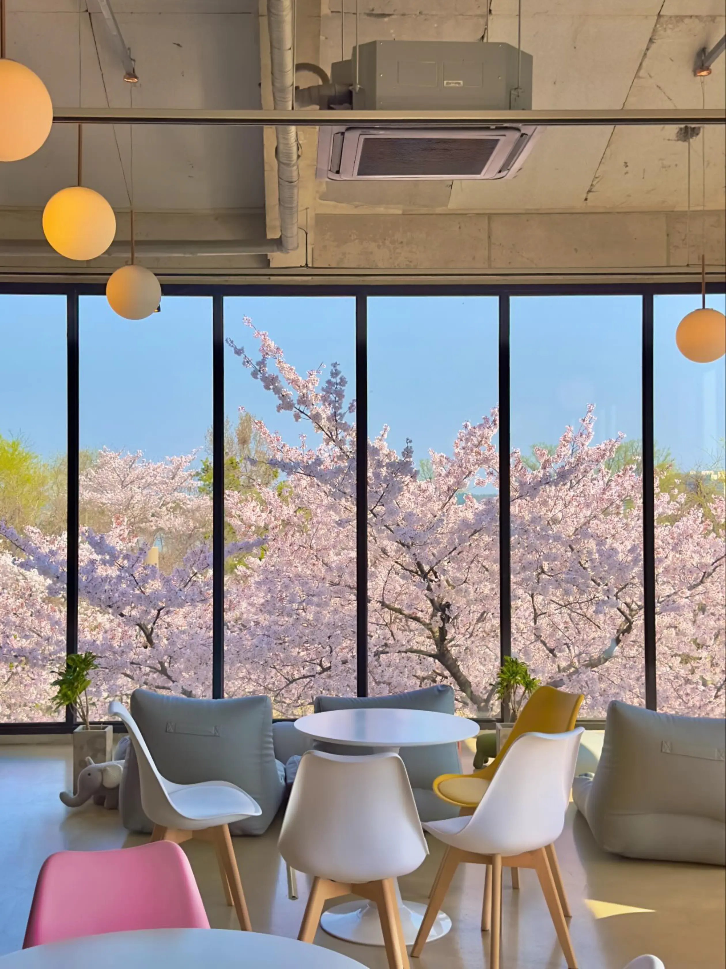 야드는 통창 벚꽃뷰로 유명한 카페야. 큰 창 너머로 벚꽃이 한가득 펼쳐져서 마치 벚꽃 파노라마를 보는 느낌이 들어. 사진 찍기 좋은 공간이라 벚꽃 시즌에 방문하면 자연스럽게 인생샷 명...