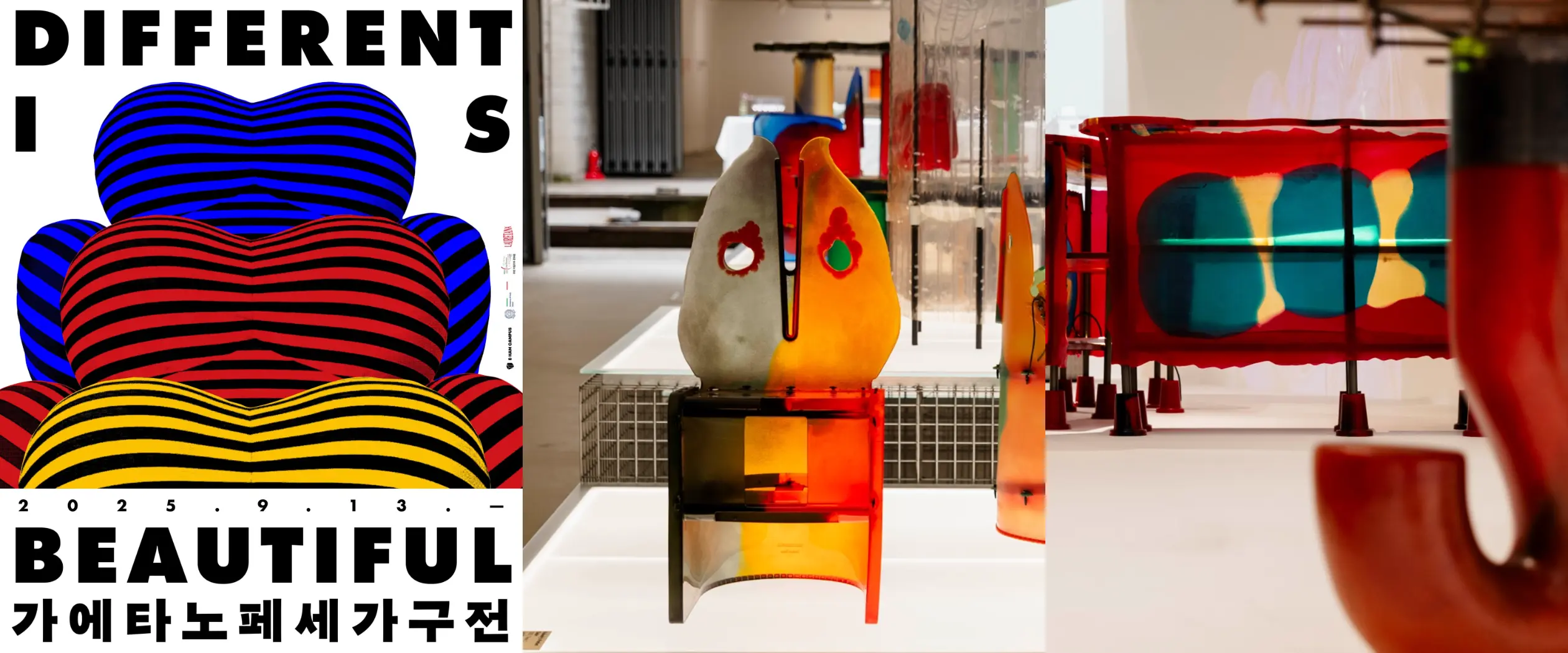 반대로, 개성 있고 통통 튀는 가구를 만날 수 있는 가에타노 페세의 전시도 있어. 이탈리아 디자이너인 가에타노 페세는 유쾌하고 독창적인 디자인을 선보여 왔어. 건축, 회화, 디자인을 넘나드는 넓은 활동 영역은 저드와 비슷하지만, 조형 철학은 완전히 정반대야. 단순 명료한 미니멀의 저드 vs 활기찬 색감과 독특한 형태의 페세, 랭랭이의 취향은 어디야?