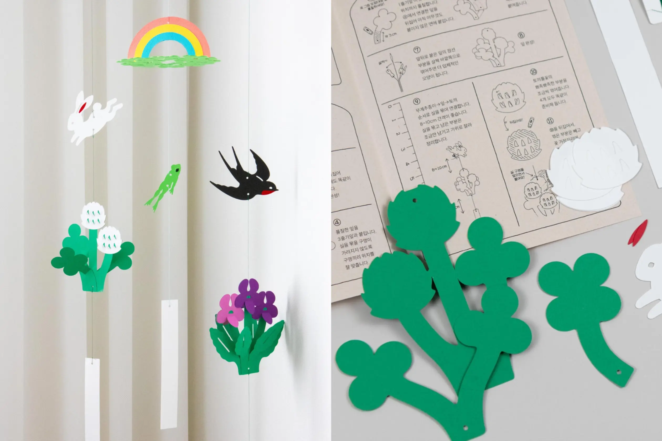 토끼풀과 토끼, 강아지풀과 강아지는 어떤 연관이 있는 건지 궁금해해봤던 랭랭이 손~🙋이 아이템은 토끼풀, 강아지풀처럼 이름에 동물이 들어간 식물을 모티브로 만든 종이 모빌이야. DIY 형식인데 20분 안팎이면 뚝딱 완성할 수 있어. 설명서에는 식물 이야기가 함께 적혀 있어서 읽는 재미가 더해지고, 쉬운 난이도 대비 완성물이 예뻐서 인테리어 소품으로도 딱 좋아.